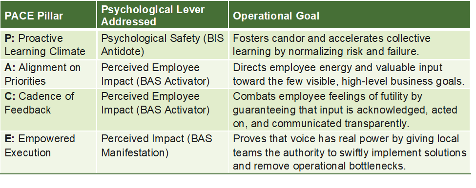 The Xerebral PACE Operational Excellence System(TM) translates the diagnostic principles of the Unified Framework into a structured, four-pillar system for leaders to intentionally cultivate high safety and high impact.